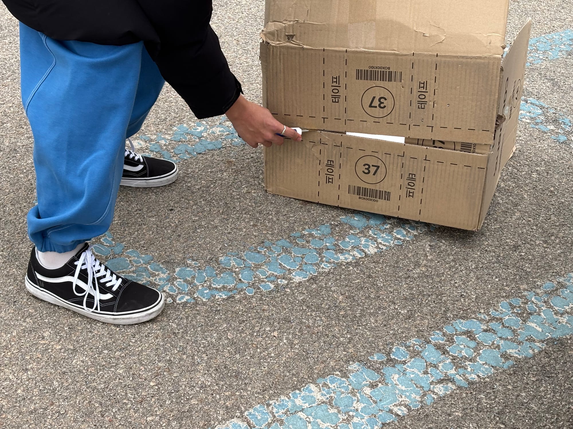 전날 주차했던 주차장에 차를 대고, 챙겨온 칼로 박스를 뜯었다. 단출하게나마 가격표를 만들기 위함이었다.