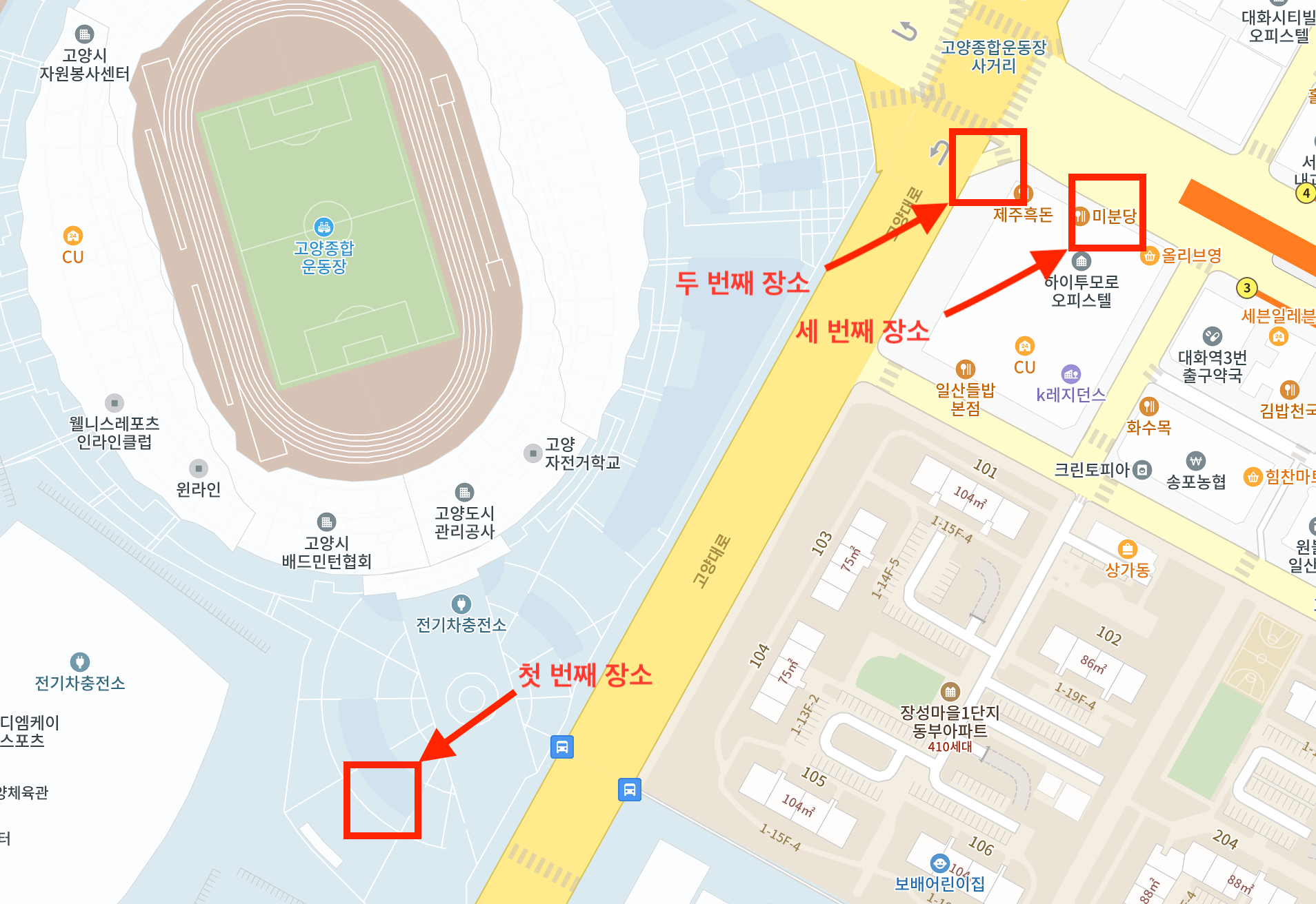 사람이 많이 지나다니는 곳으로 자리를 옮겨야 했다. 대화역에서 고양종합운동장으로 갈 때 무조건 지나치는 길목인 고양종합운동장 사거리 앞으로 자리를 옮겼다.